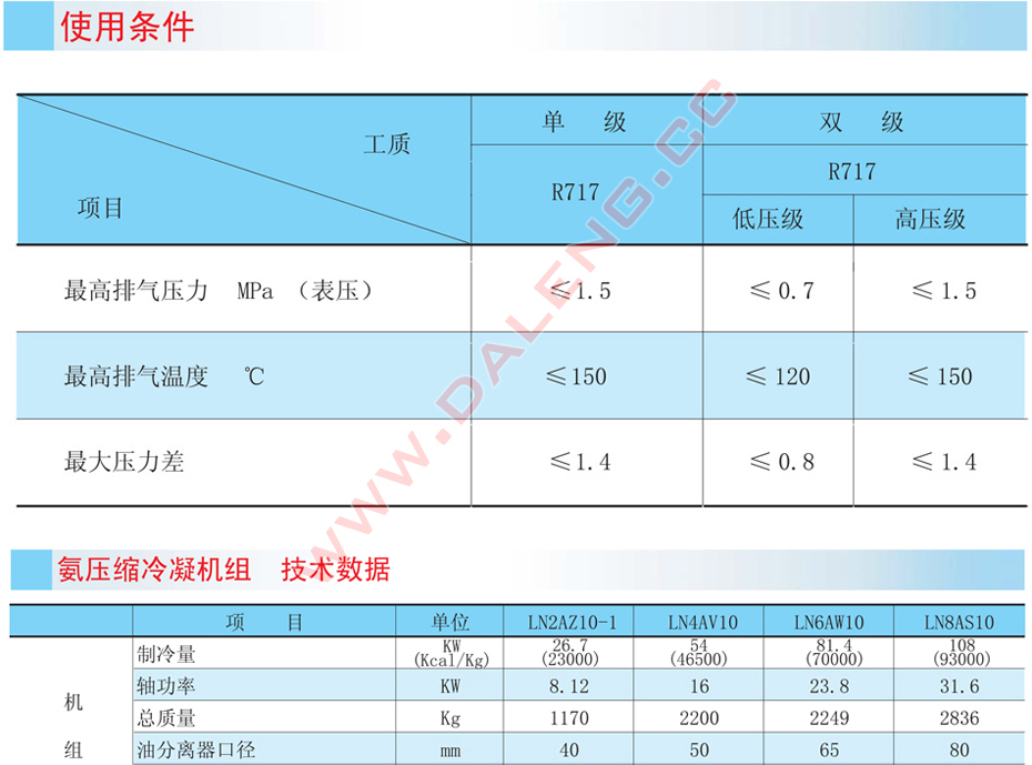 品 名:  LN2AZ10活塞式氨制冷压缩冷凝机组
