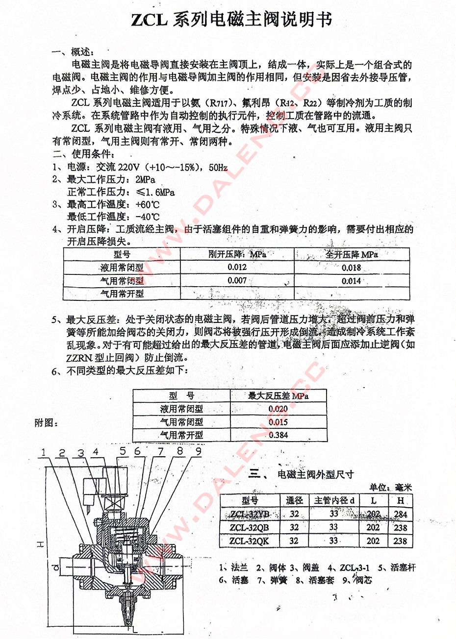 ZCL系列电磁主阀说明