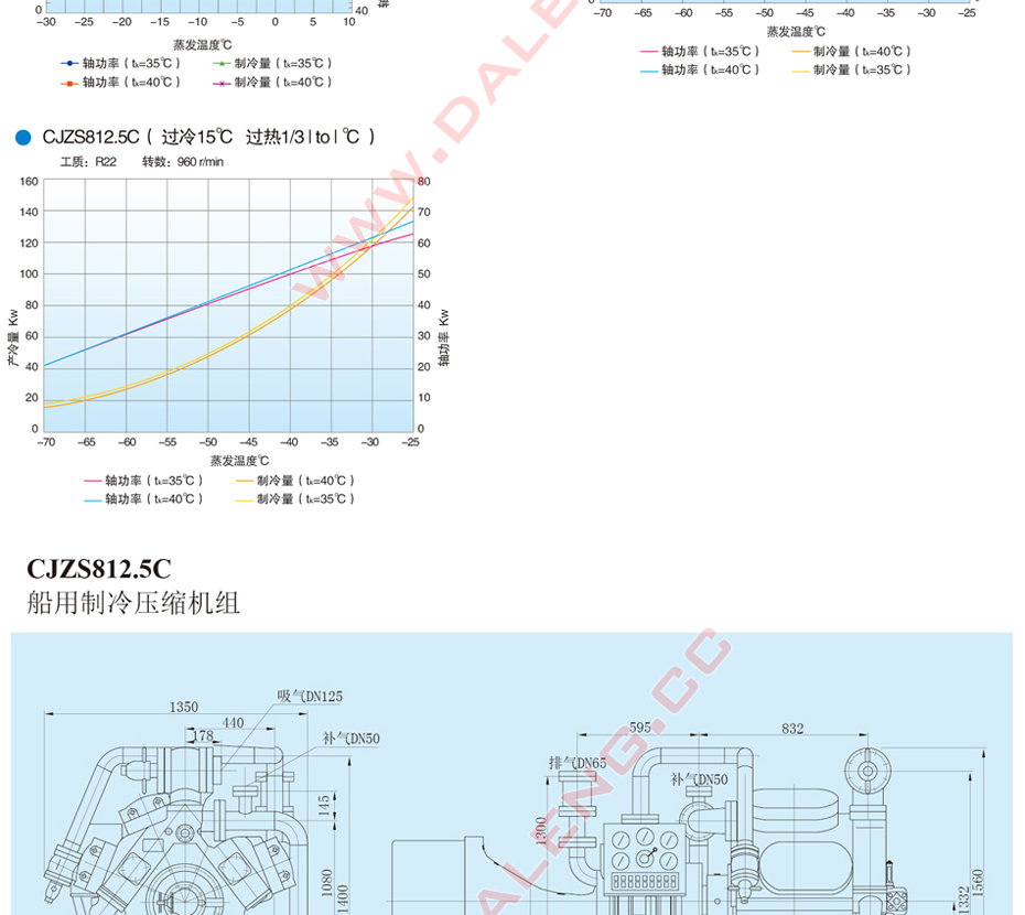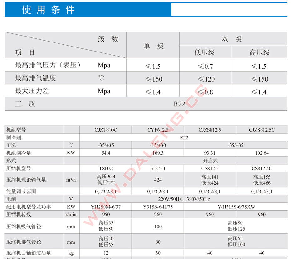 船用活塞式制冷压缩机在冷凝温度≤40℃,蒸发温度单级在+5℃至-30℃、双级在-25℃至-45℃的范围内应用于船上的食品低温加工、冷藏运输及船上的空气调节。