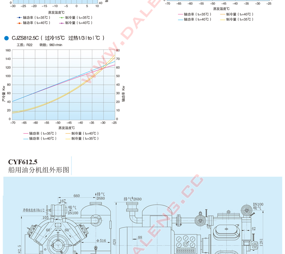 船用活塞式制冷压缩机在冷凝温度≤40℃,蒸发温度单级在+5℃至-30℃、双级在-25℃至-45℃的范围内应用于船上的食品低温加工、冷藏运输及船上的空气调节。