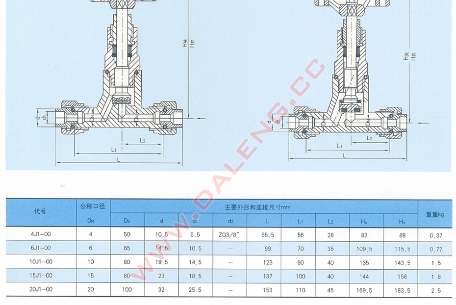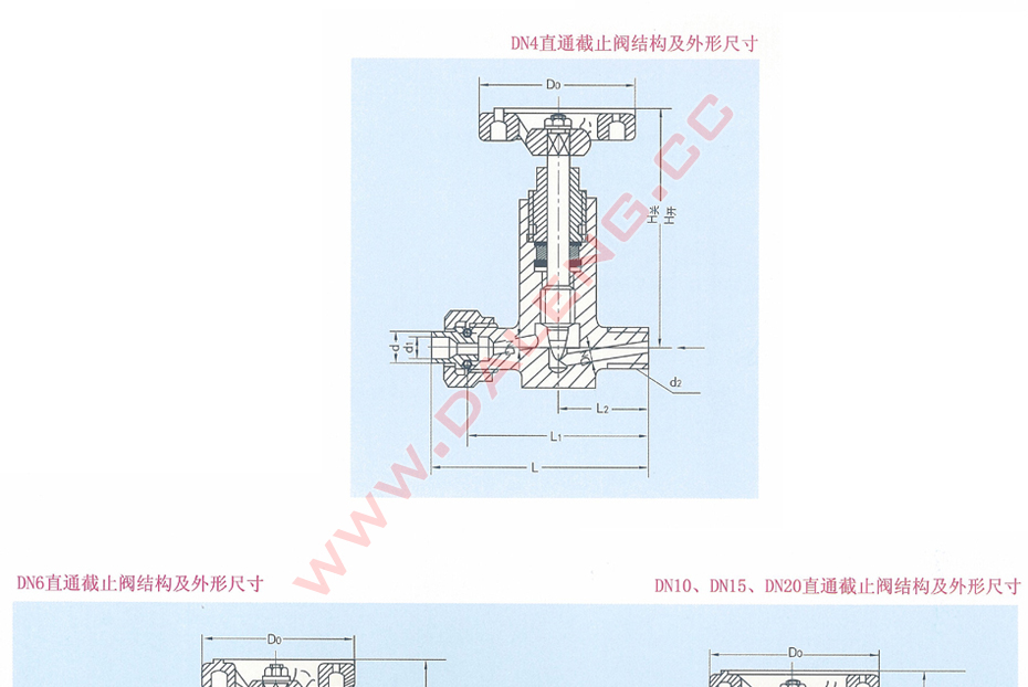 DN4-DN20直角截止阀的阀体及阀盖均为锻钢件。