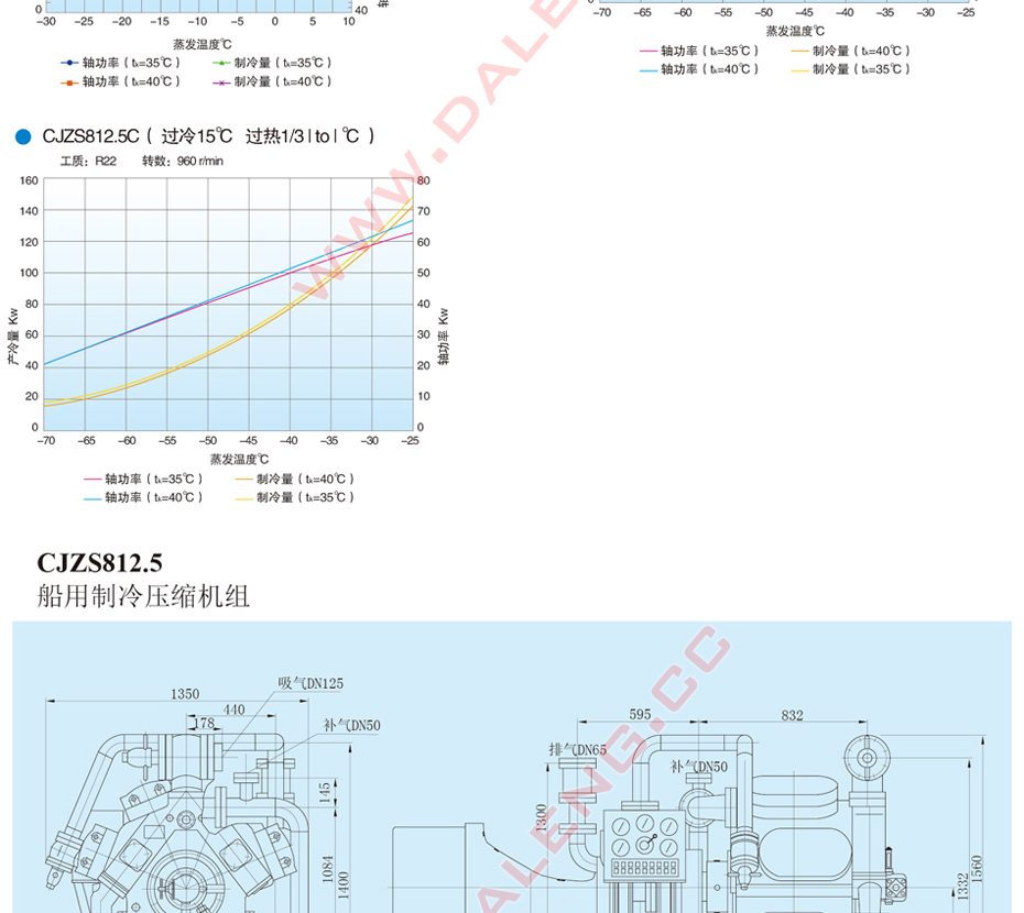 船用活塞式制冷压缩机在冷凝温度≤40℃,蒸发温度单级在+5℃至-30℃、双级在-25℃至-45℃的范围内应用于船上的食品低温加工、冷藏运输及船上的空气调节。