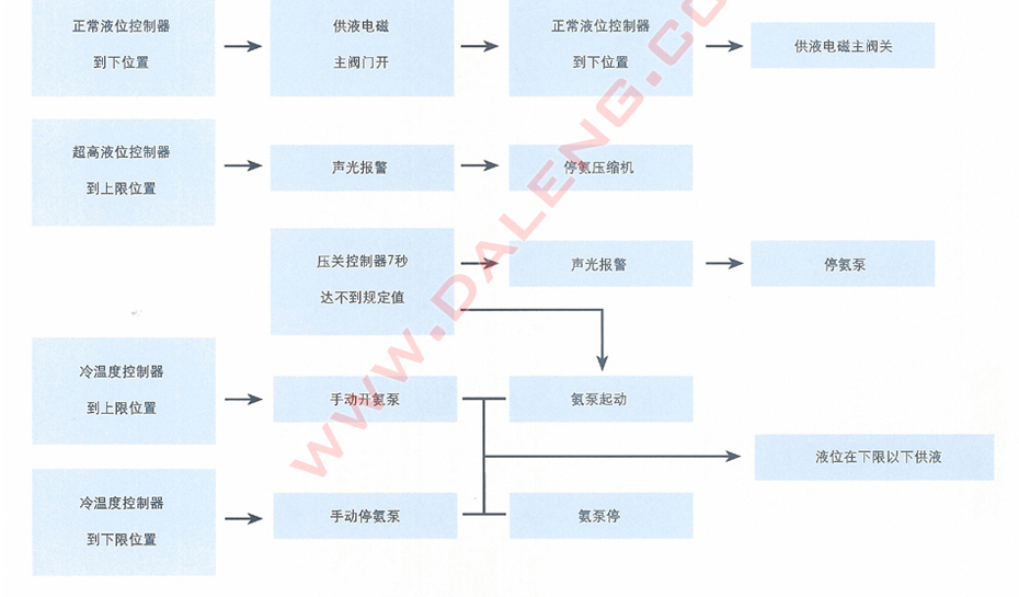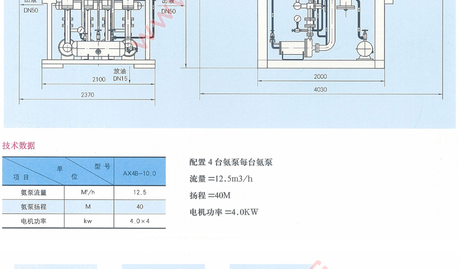 本系列组合装置将卧式低压循环贮液桶和两台离心式屏蔽电泵组装在同一钢架上,工艺管路,阀门、自控元件、电气元件均已装配齐全,构成桶泵一体化供液装置。本系列组合装置具有自动供液、液位显示、液位高度报警、氨泵自动或手动操作等功能。